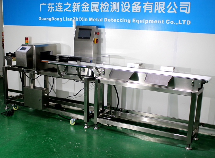 金屬檢測和重量檢測一體機,主要用于小包裝干貨等按重量大小分選規格或等級,適用于企業流水線產品生產動態稱重、產品品質重量檢測及金屬異物檢測,專用于產品整箱缺件、附件缺失以及金屬殘留金屬異物檢查等等,配備自動剔除不合格處理分選設備,前段為金屬超標剔除,后段剔除為重量檢測不合格剔除。